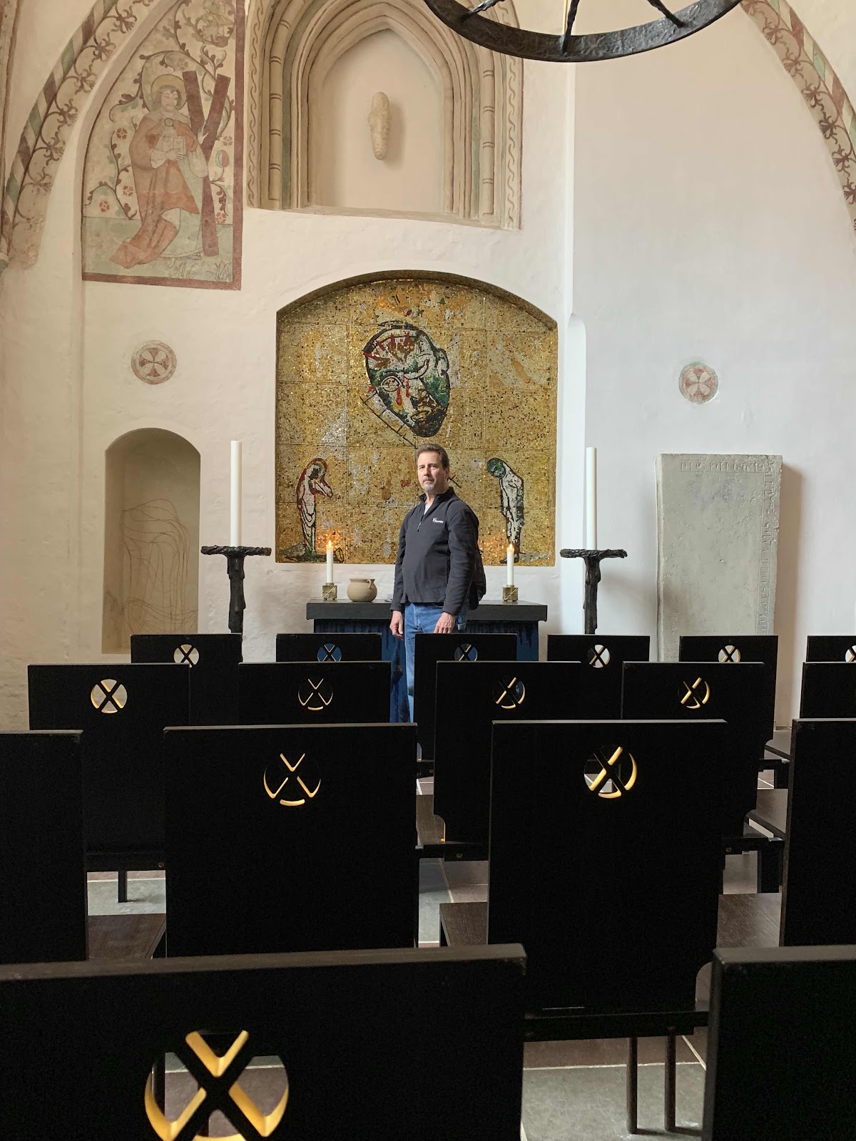 So, here we found a small chapel that seats about 30 people.