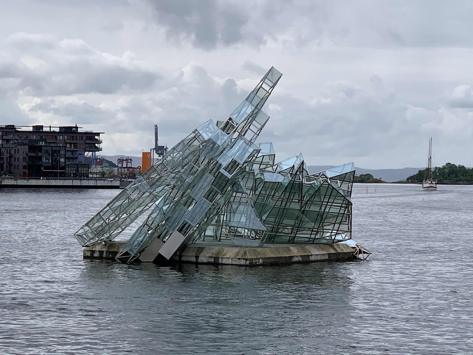 In front of the opera house is a floating art exhibit. It’s anchored to the bottom of the harbor, and is meant as a warning...if we (the workd) allows global warming to continue, the remnants of iceburgs may just float right into the Oslo harbor!