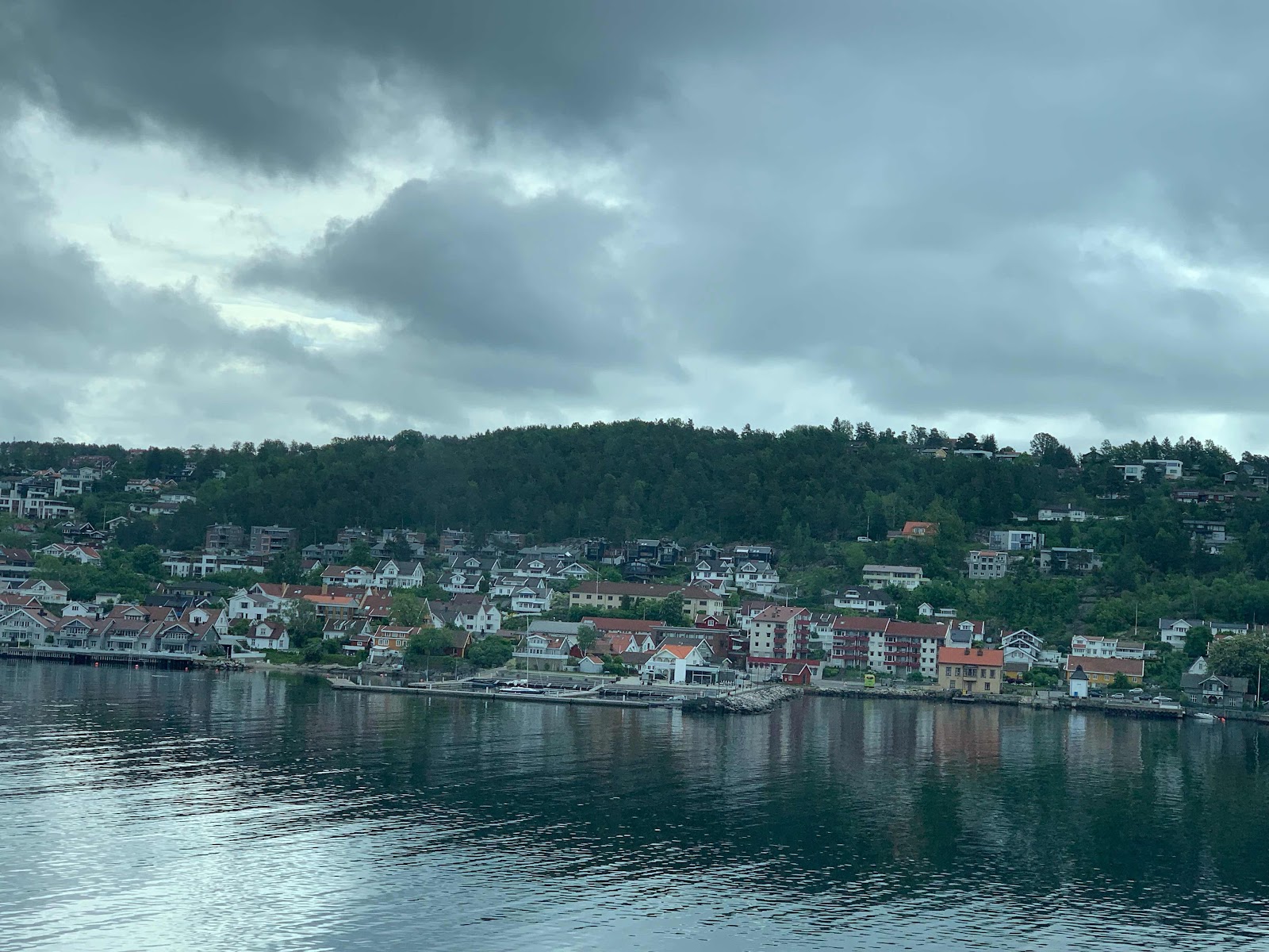 As we continue, we see a Norway experiment..a self driving bus ! It’s between the large cruise terminal and the city. If it’s successful, they’ll use them in the city, too!