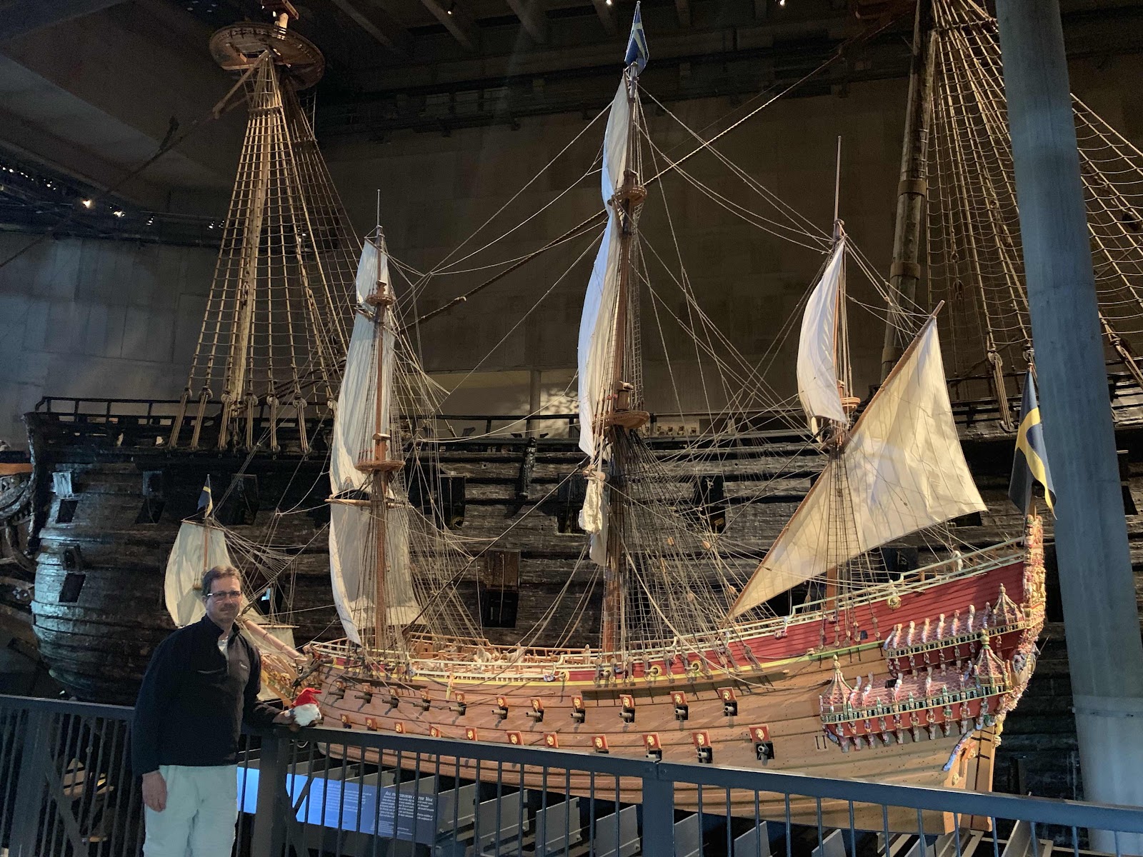 So...the story of the Vasa, in short, is this. Sweden was at war, and King Gustav ordered this ship (among others) to be built. He made a few ‘change orders’, and before the Vasa was finished the shipbuilders also changed...so dimensions were quite chaotic. For example, what started as one level of 34 cannons was turned into two levels totaling 64 cannons! So, launch day finally arrives, August 10, 1628. Everyone in Stockholm gathers to watch this ship, the most expensive and magnificent ever built, launch. She launches in a 8 knot breeze...light enough that the sails could be raised and held by hand. 3000 meters from the launch, the cannon doors open for a 64 cannon salute, a bit if a breeze came down the opposite cliff and filled the sails. The ship suddenly heels unexpectedly while the onlookers gasp. She rights, but all is not well. The next breeze heels her even more, and she takes on water thru the cannon ports....and SINKS! Unbelievable! It lay there at the bottom of the harbor in 32 meters of Baltic water, which has a fairly low salinity. This, fortunatly for us, allowed the Vasa to remain quite preserved for the 333 years it took for the sun and stars aligned for it to be raised. It sits now, 98% original, in this museum! Why did she sink? It’s believed that: