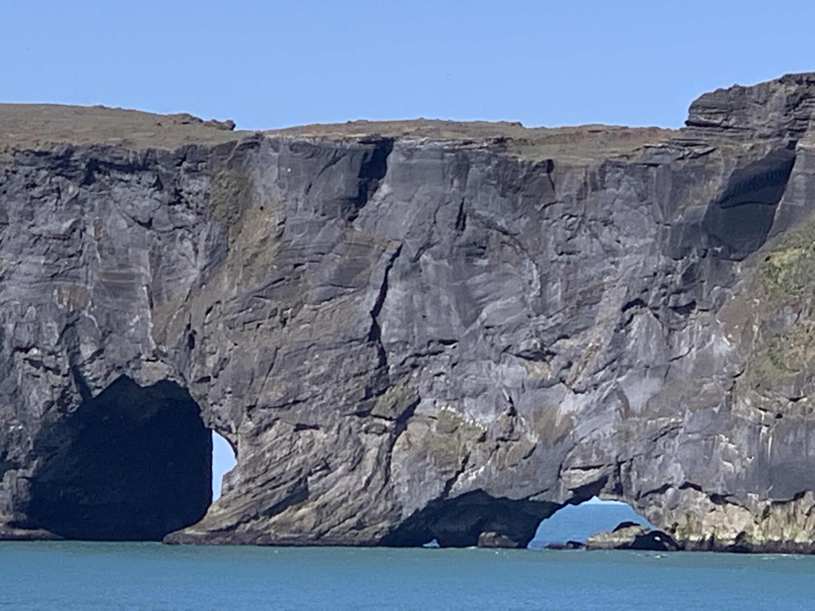 Right across from our hotel are these cool formations along a black sand beach, at the Dyrholaey Prometory. Thousands of nesting birds are noisy on the cliffs...but so far no puffins.
